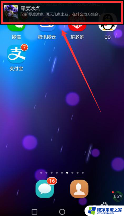 5.设置完成后,再接收微信消息的时候。就会在手机屏的上方通知显示消息内容的详情了,但是消息内容只会在手机屏上停留几秒。