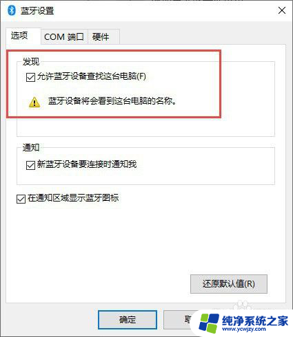 12.如果出现不能连接AirPods的现象,我们需要先进入到“更多蓝牙选项”里。勾选“允许蓝牙设备查找这台电脑”选项,然后单击确定按钮即可。