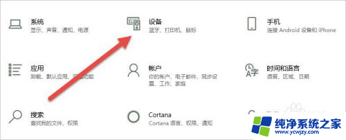 3.打开设置图标后会看到一个白色的窗口,在里面找到“设备”选项,然后点击打开。