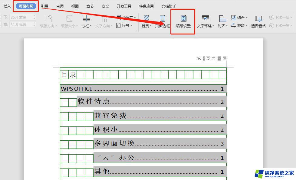 1. 打开文档,依次点击“页面布局”—“稿纸设置”;