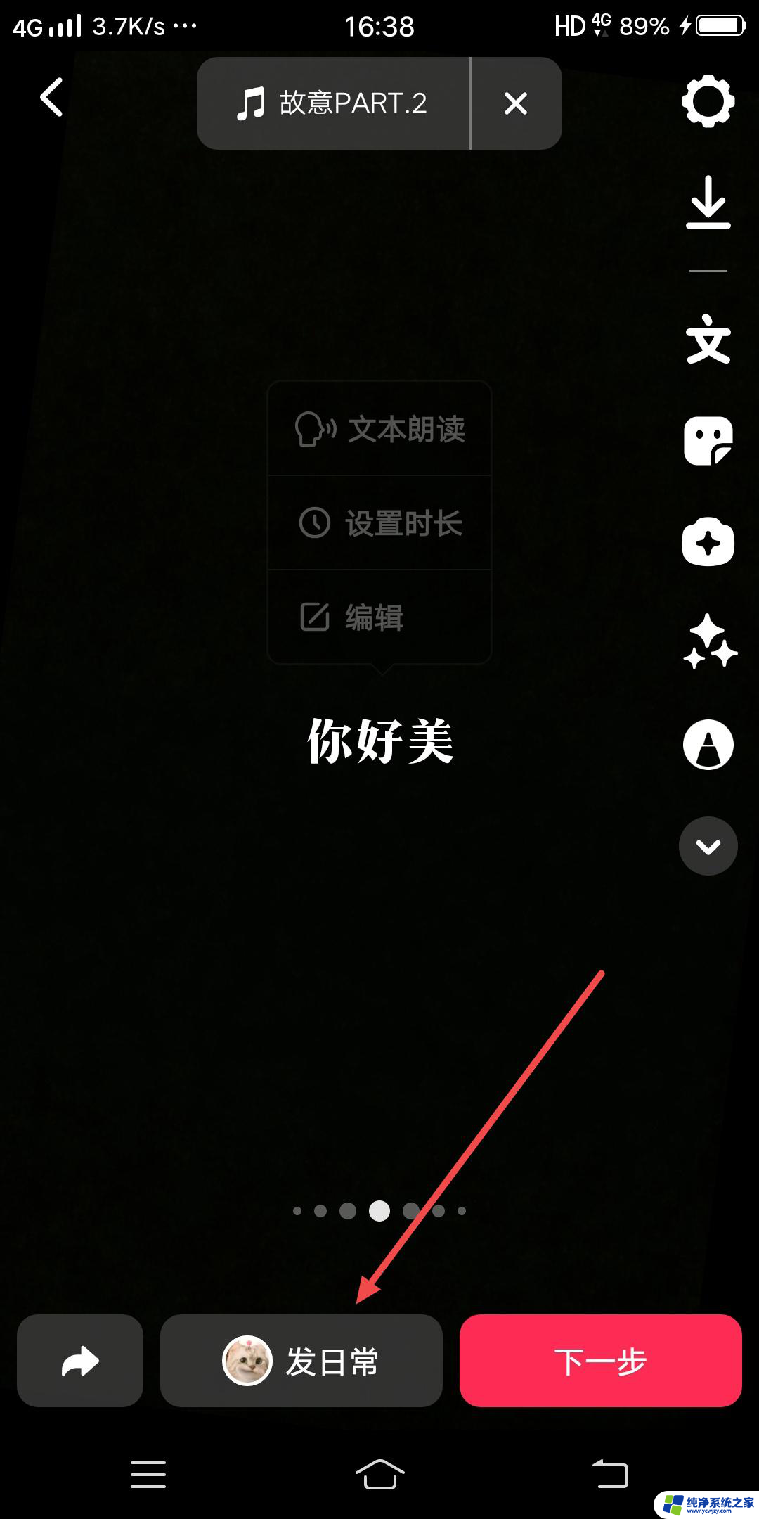 4.长按文字,然后点击设置时长。调整时间的长度,然后点击对号,然后点击发布即可