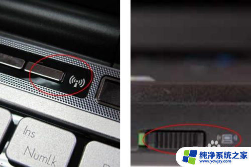 这点很重要,却也往往很容易被忽视。不同型号笔记本的开关位置不同,一般可在键盘或机身找到,下图展示某两个品牌电脑的无线网卡开关位置;