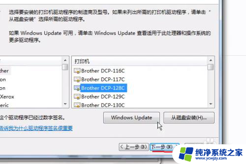 7.操作七:找到打印机的驱动就点下一步;弹出更新驱动的框,点完成即可;