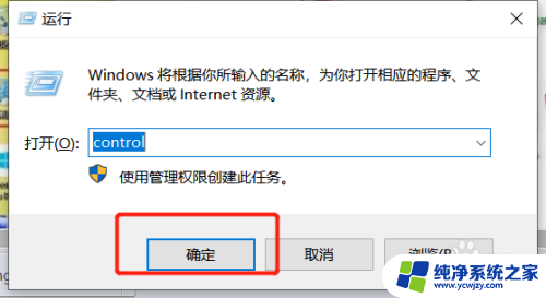 3.操作三:在运行中的窗口中输入:control命令,按下确定键。打开电脑的控制面板,操作如下。