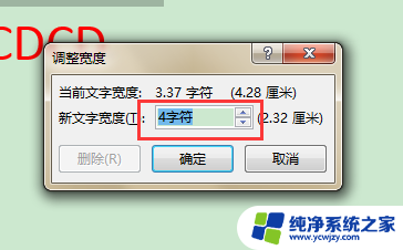 4.在弹出的对话框里面输入需要对齐的文字字符数,如AB和CD之间需要对齐4个字符就输入4。这样AB和CD就对齐了,这个方法比较实用也很快速。