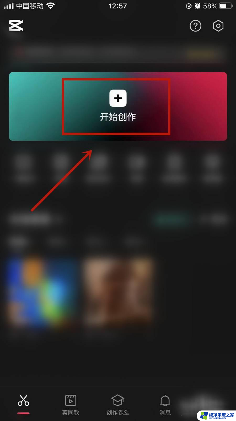 首先打开剪映。点击开始创作,导入之后,在页面下方,点击比例。