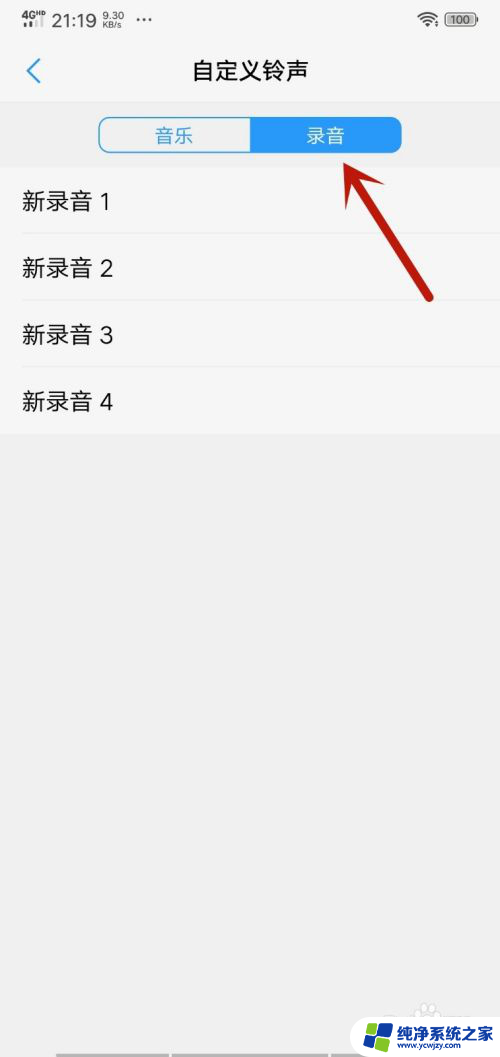 6.然后在里面【录音】选项里面,可以用手机录音作为闹钟铃声。点击选中就可以设置完成,如图所示。