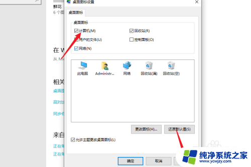进入桌面图标设置,勾选计算机按钮。即可调出我的电脑图标,