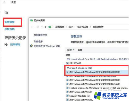 点击“卸载更新”,在已安装更新的界面中。右键点击KB5000802更新补丁,点击卸载即可。