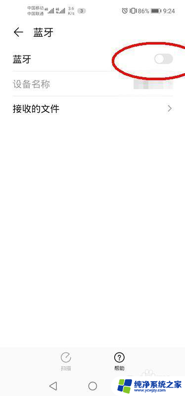 3.在此页面,首先打开“蓝牙开关按钮”(建议平时蓝牙关闭。可达到节省手机电量的效果)。