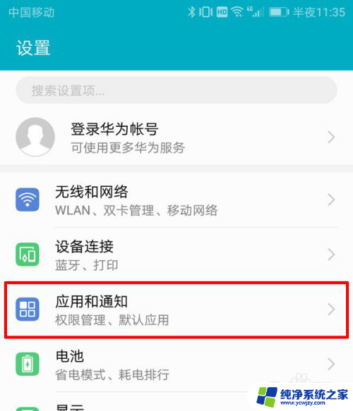 2.在打开的设置界面,找到“应用和通知”栏,点击“应用和通知”。