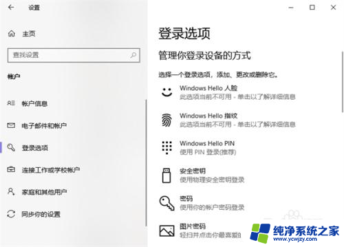 4.再通过右侧的登录方式,选择需要设置的开机密码。有人脸设置、指纹设置、PIN登录、物理安全密匙、密码、图片密码等等;