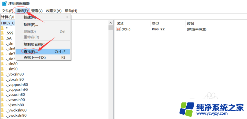 2.进入注册表界面,点击上方【编辑】选项,在弹出的菜单栏选择【查找】选项