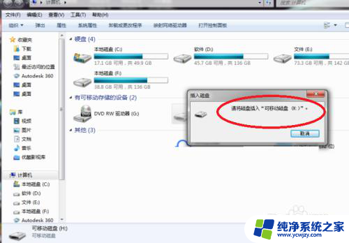 1.有时U盘插入电脑显示‘请插入磁盘’,下面介绍怎么解决(如图);