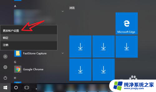 1.点击win10界面左下角【开始键】,选择【账户】。