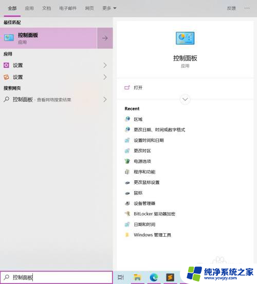 2.我们先打开左下角搜索栏,输入“控制面板”,打开它