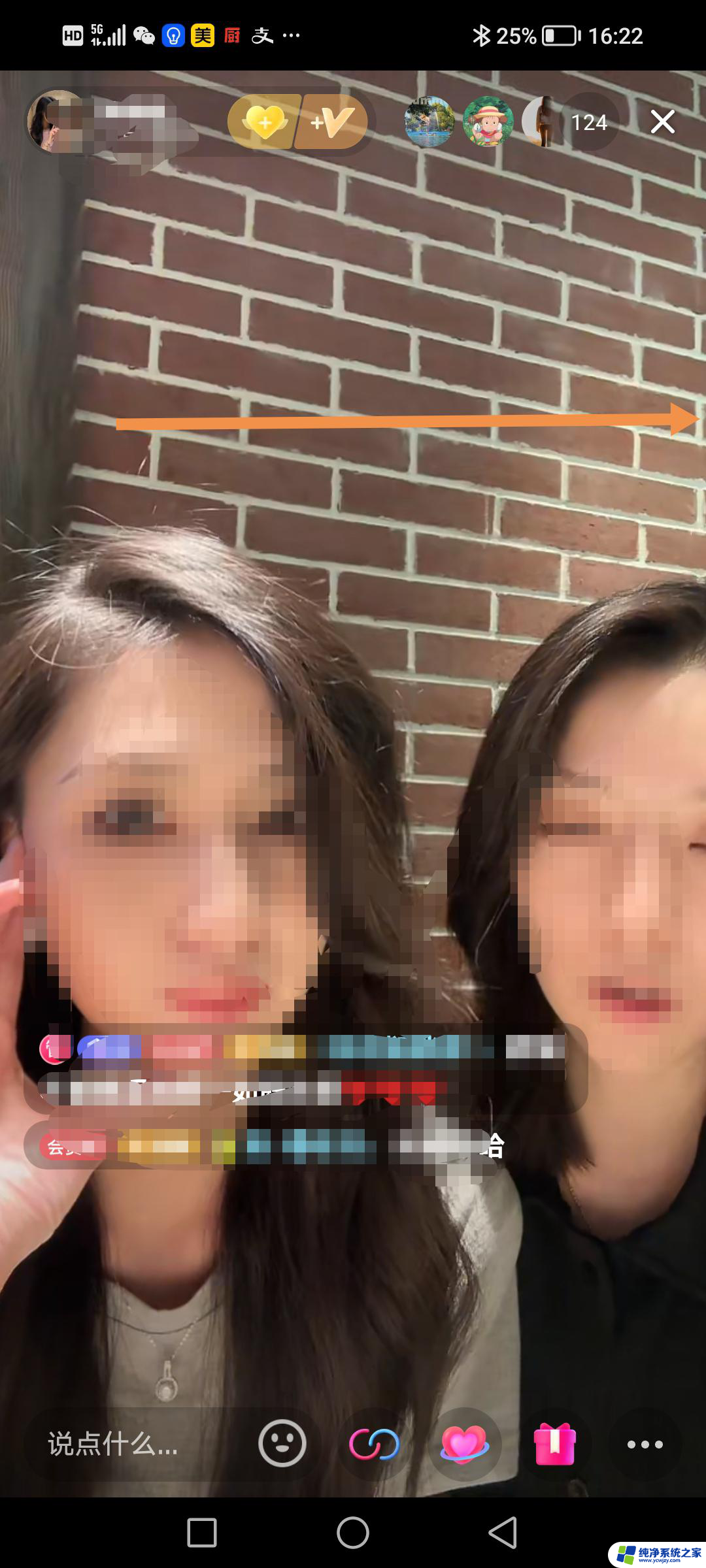 4.用手指在直播界面往右滑动。