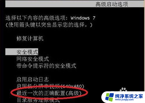 6.第四开机按F8进入安全模式后在退出,选最近一次正确配置再开机。就可以进入正常模式(修复注册表)。