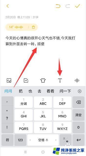 11.如图所示,当语音输入模式完成后。就可以直接对其中的文字内容进行编辑操作,同时还可以对文字的样式、颜色以及大小进行设置。