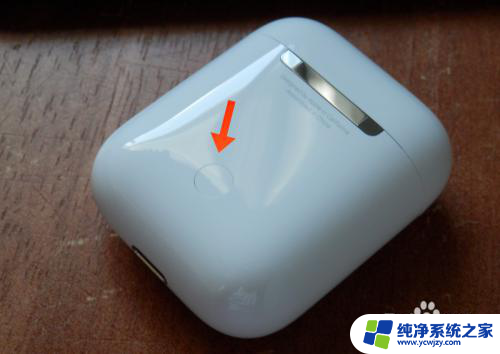 8.如果之前连接过其他的苹果设备,则需要先重置AirPods耳机。重置方法很简单:先将AirPods耳机放入充电盒,长按背面的圆点。直到耳机盒闪烁白色的灯光,重置就完成了。