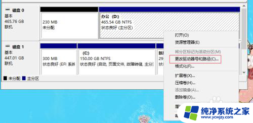 2.第二步:进入磁盘管理界面,右击需要隐藏的分区。然后选择“更改驱动器号和路径”,如图所示。
